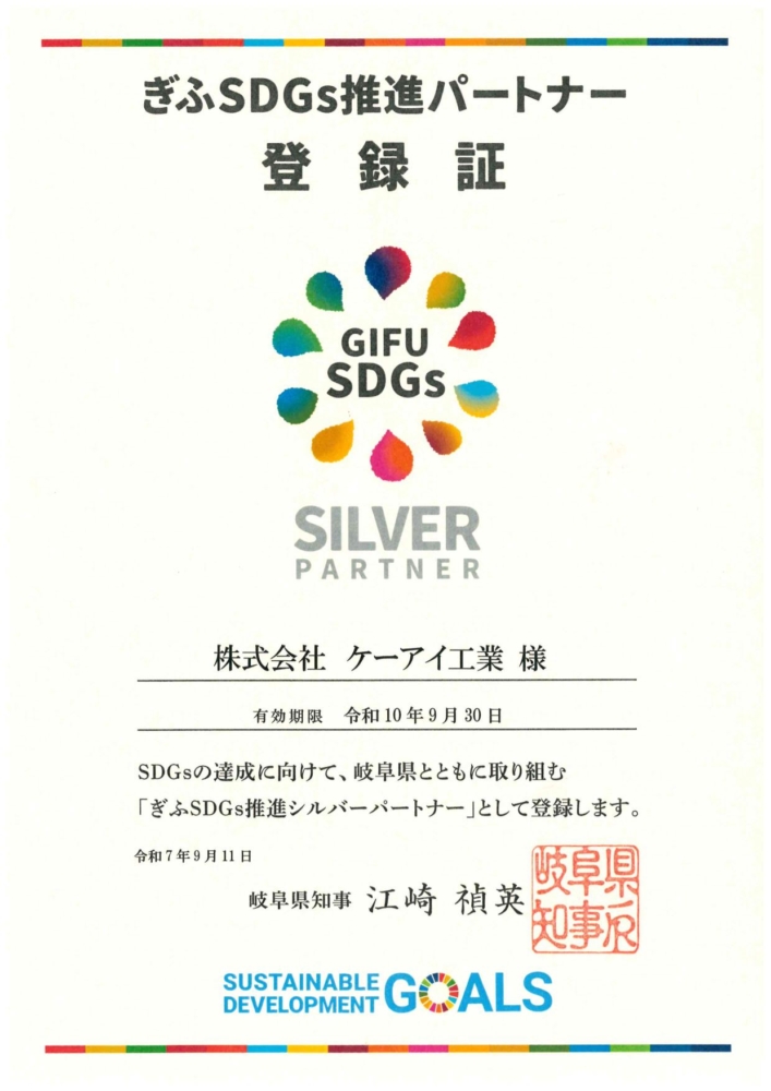 このたび、当社は岐阜県より「ぎふSDGs推進シルバーパートナー」に認定されました。