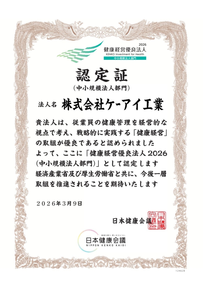 また、社員の健康と働きやすい環境づくりにも取り組み、本年度も「健康経営優良法人2026(中小規模法人部門)」の認定を取得することができました。